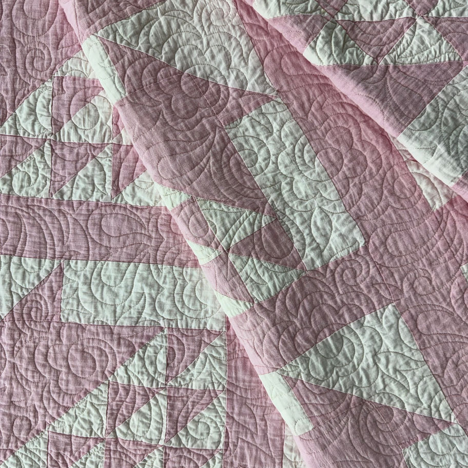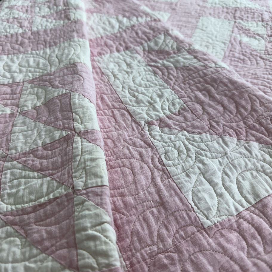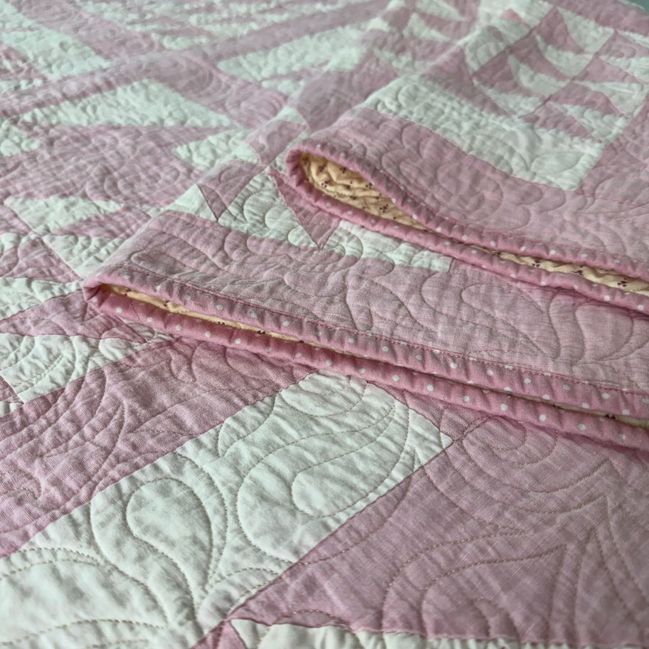 Look at this vintage sweetie! She is such a pretty soft pink color. You can see the flowers in her quilting that go perfectly with her baskets. So many thoughts about the special girl that this top was started for. Now that she is finished, Annabelle can be a lovely new vintage addition to your home.