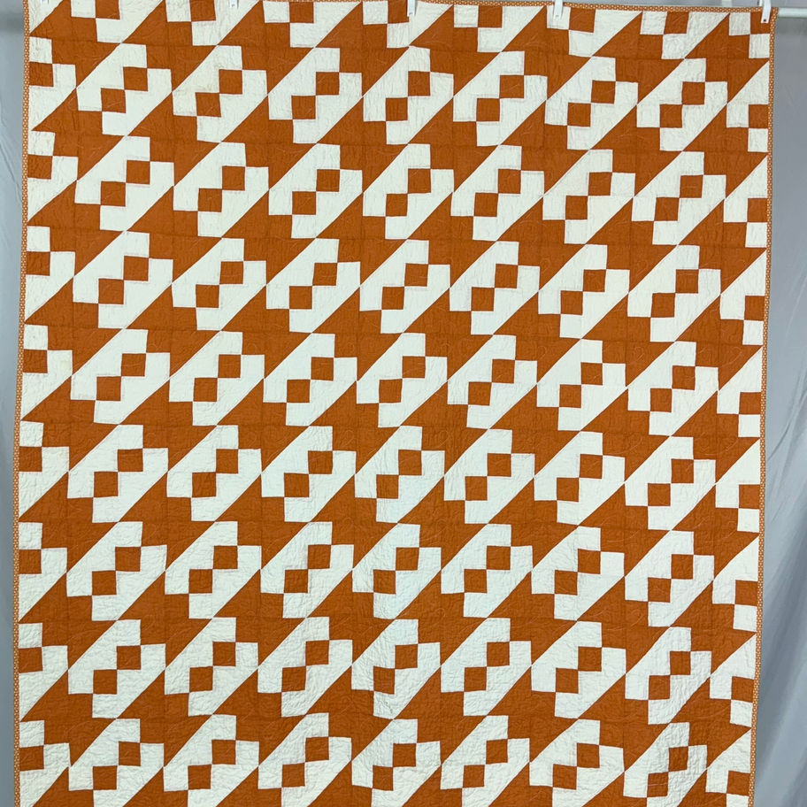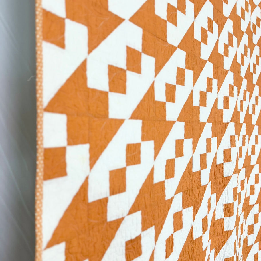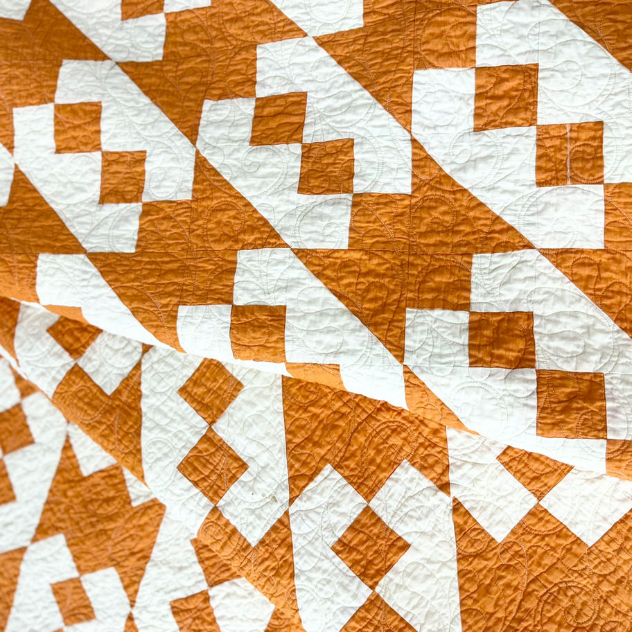 What a gorgeous two-color quilt! The top was spectacular and put together with amazing precision. I can imagine that her maker made many quilts before making Autumn. As many vintage quilts show us that we can make do with what we have, Autumn falls into that category.