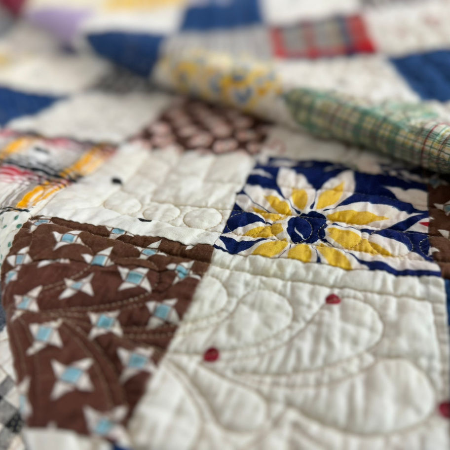 Oh, how unique is Clara? Very! Her colors are amazing and her fabrics are fun. I spy with my little eye a little critter on a toboggan! I spy with my little eye a critter on ice skates! Can you? Clara sat unfinished for many years. She went through the Reawaken Quilts process and has now been laundered and is ready to use.